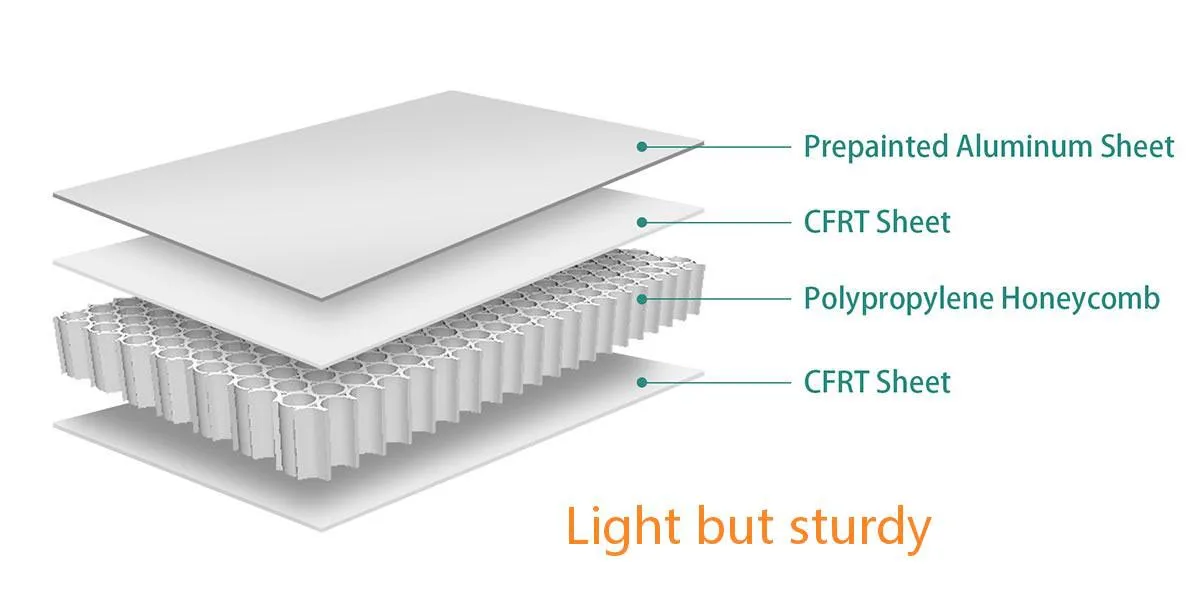 ●Honeycomb-lösningen: Extrem lättvikt. Våra kompositpaneler har samma eller större styrka än stål samtidigt som man minskar kroppsvikten med 30 % till 50 %.